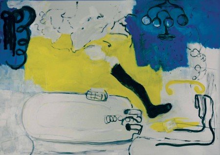 And then there are a handful of works that express what Barbara Kaleta emphasizes as “a wonderful way to get back to the unfettered place where we first made art as kindergarteners scribbling on newsprint.” The action of painting on paper rather than canvas is what Kaleta explains as a freedom to work with abandon. Less concerned with perfection and instead captivated by the urgency that the impulsive brushstroke can impart, Kaleta finds paper the perfect conduit for expression. Not only does she value paper for its aptitude for absorbing oils and turpentine, but she appreciates its capacity for relinquishing her initial sketch marks which ultimately are what add to her work’s playful zest and spirited sense of movement. In reference to “Downton Abbey,” Don’t Slip on the Soap doesn’t just warn us about our fascination with luxury, but its whimsical depiction of a decadent bathroom complete with a chandelier inspires us to acknowledge our own absurd absorptions with materialism.